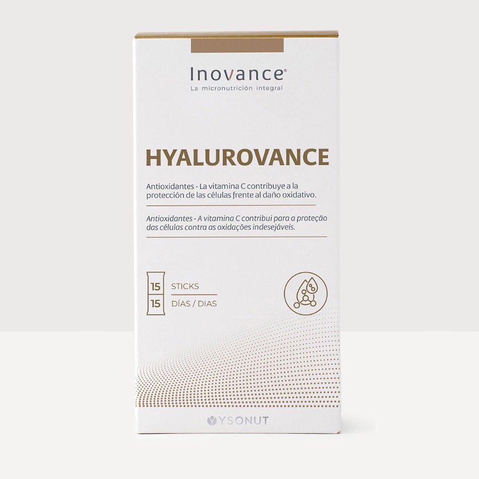 Inovance HYALUROVANCE es una formulación que aporta 10 g de colágeno marino hidrolizado (Peptan®) y 25 mg de ácido hialurónico, asociados a micronutrientes necesarios para la formación del colágeno, como el zinc y la vitamina C.